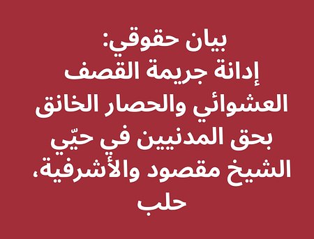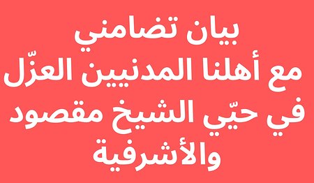 نتابع في المنظمات الحقوقية السورية الموقّعة أدناه ببالغ القلق استهداف الفصائل السورية المرتبطة بوزارة الدفاع السورية للأحياء السكنية في حيّي الشيخ مقصود والأشرفية في مدينة حلب. وقد أسفر هذا القصف العشوائي عن مقتل خمسة أشخاص وجرح ٣٠ مدنياً، بينهم نساء وأطفال حتى هذه اللحظة ولا تزال الهجمات على الحيين مستمرة وبشكل كبير، إضافةً إلى تدمير بعض المنازل والممتلكات المدنية، وتعطيل…