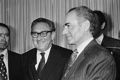 كيسنجر ومحمد رضا بهلوي في عام 1972 في زيورخ