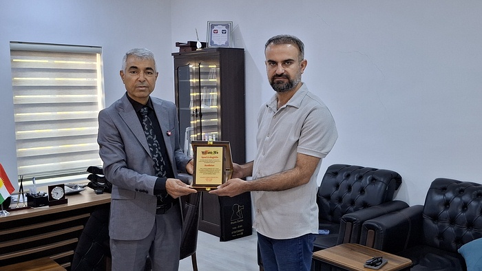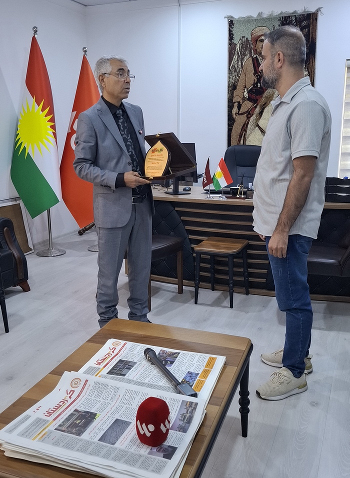 حيث تسلم الأستاذ صباح ميراني، المسؤول العام لإعلام الحزب الديمقراطي الكردستاني – سوريا، درعي التكريم المقدم للصحيفة والقناة من قبل شفيق جانكير “مدير موقع ولاتي مه” ، تقديرا لدورهما في دعم الإعلام الكردي وإبراز قضاياه العادلة.