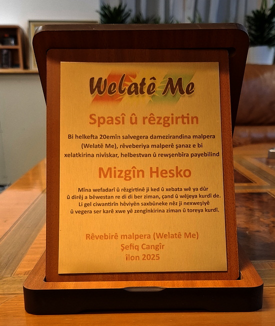 في إطار فعاليات الذكرى العشرين لتأسيس موقع “ولاتى مه”، كرمت إدارة الموقع عددا كبيرا من الشخصيات الأدبية والإعلامية والثقافية، تقديرا لعطائهم وخدمتهم للقضية الكردية. ومن بين تلك الشخصيات، كان من المقرر أن يقدم درع تكريمي للشاعرة والأديبة مزكين حسكو، تكريما لمسيرتها الإبداعية ومكانتها المرموقة في المشهد الثقافي الكردي.