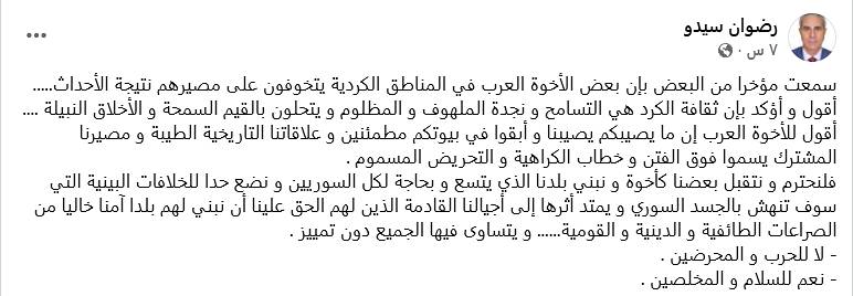 سمعت مؤخرا من البعض بإن بعض الأخوة العرب في المناطق الكردية يتخوفون على مصيرهم نتيجة الأحداث…..