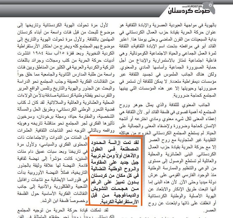 – ورد في صحيفة كردستان التي يصدرها حزبك ب ك ك العدد 76 تاريخ 2015: «لقد تمت إزالة الحدود المصطنعة في العقول والأذهان». هل كنتم تضحكون على الكُرد السذج.؟؟