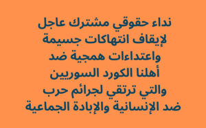 تُعرب الشبكة الكردية لحقوق الإنسان في سوريا والمنظمات الموقعة ادناه عن إدانتها الشديدة واستنكارها البالغ للجرائم الجماعية والمجازر التي ارتُكبت خلال ٢٤ ساعة الماضية بحق المدنيين في قرية خراب عشك، وقرية شهربانية، وقرية القاسمية، وذلك على يد مجموعات مسلّحة مرتبطة بوزارة الدفاع في السلطة السورية، خلال فترة هدنة مُعلنة كان يُفترض أن تشكّل إطارًا لوقف الأعمال القتالية وضمان حماية السكان…